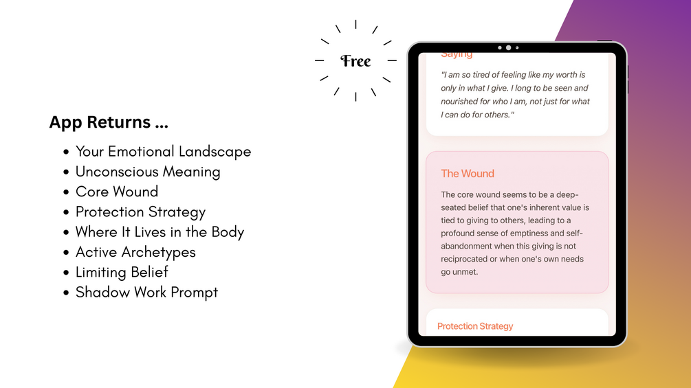 Every section includes guided shadow-work journaling, with space to write, feel, and reflect — not perform.